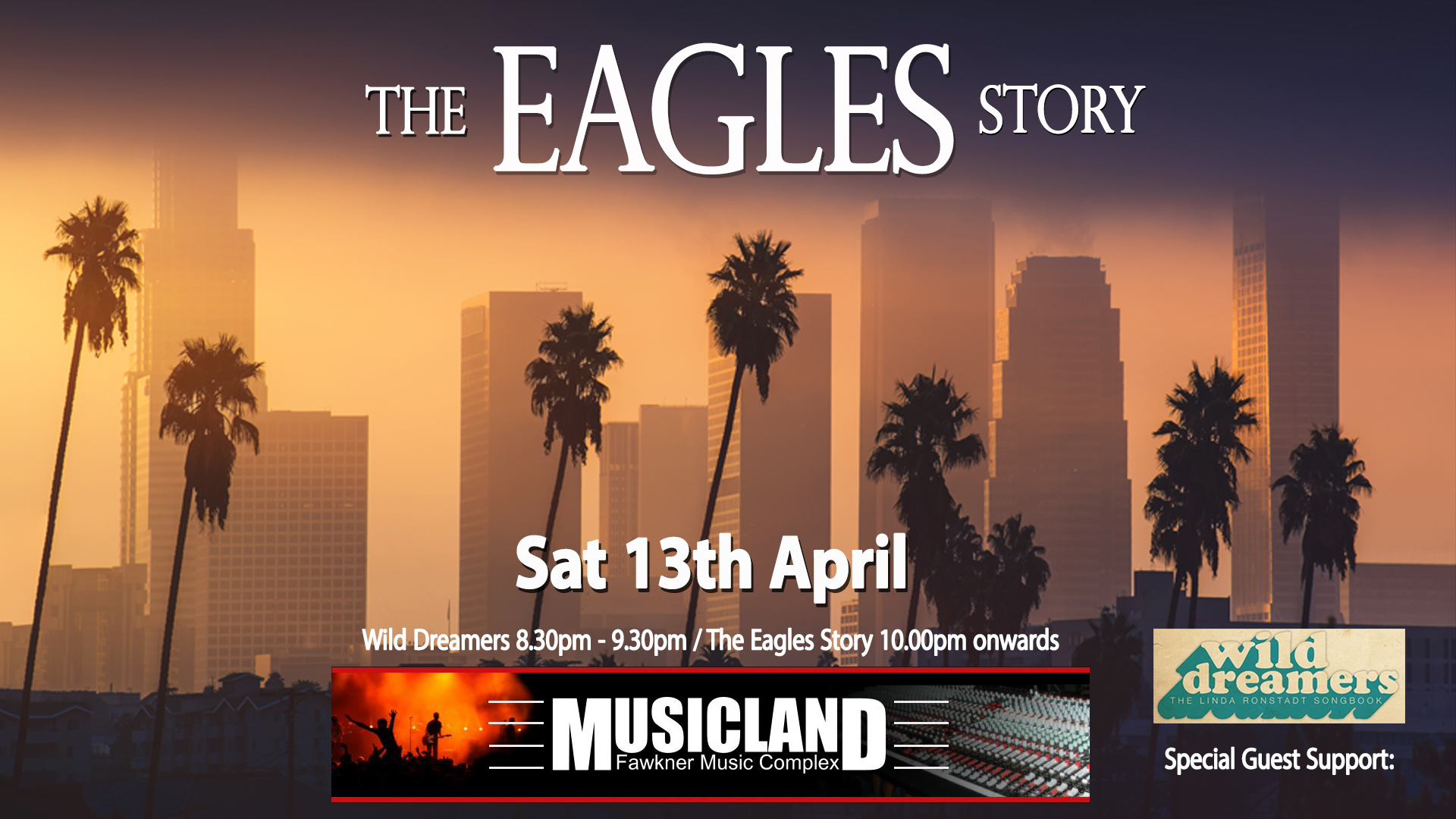 Category: Eagles Story Celebrations, Just Announced, Latest NewsTags: Ash Osgood, Australia's Premier Eagles Tribute, Bren O'Shea, Cres Crisp, Eagles Tribute Show, Fawkner, Gary Young, Gigs, Jo George, Life In The Fast Lane, Linda Ronstadt Songbook, Lisa Mio, Live Music Venue, Musicland, MusicLand Fawkner, MusicLand Fawkner Music Complex, Nigel Davis, Pete McCarthy, Steve Wells, TES, The Eagles Story, Victorian Eagles Show, Wild Dreamers