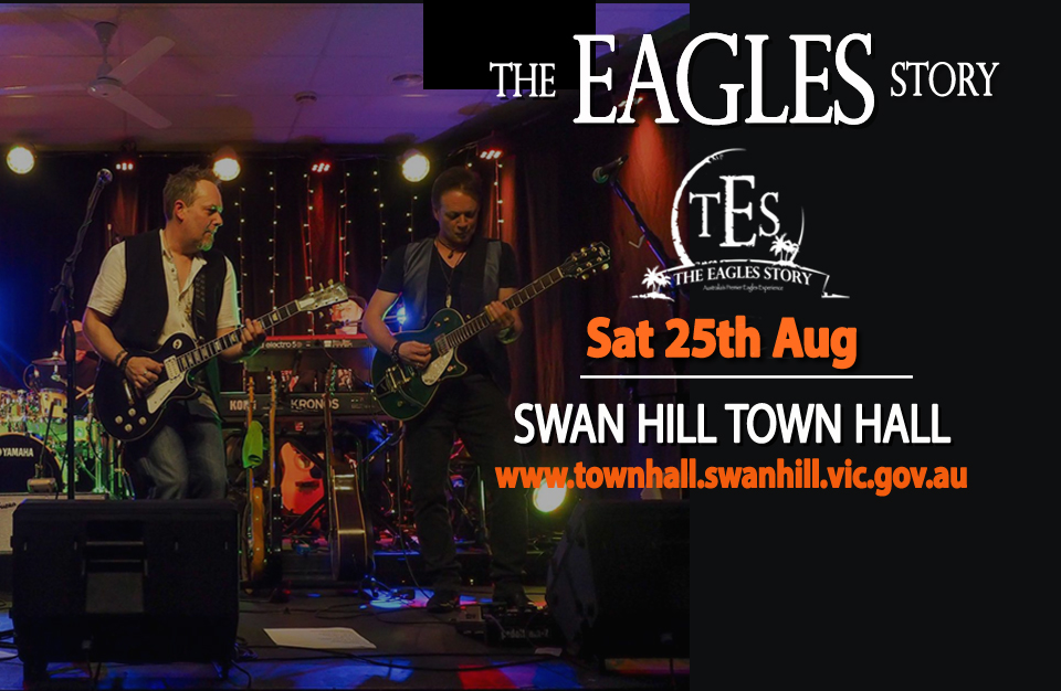 Category: Eagles Story Celebrations, Latest NewsTags: Ash Osgood, Australia's Premier Eagles Tribute, Cres Crisp, Eagles Tribute Show, Gary Young, Gigs, Life In The Fast Lane, Pete McCarthy, Steve Wells, Swan Hill, Swan Hill Town Hall, Swan Hill Town Hall PACC, Swan Hill Town Hall Performing Arts and Conference Centre, TES, The Eagles Story, Victorian Eagles Show