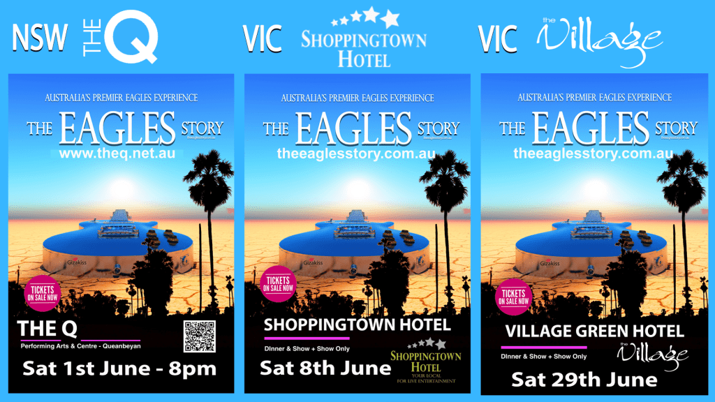 Here we are again with the first half on the year “Already Gone” and to celebrate we have 3 shows one of which has already SOLD OUT… Thanks to all those EAGLES fans who got onboard nice and early with us for this Saturdays show at the Frankston RSL…