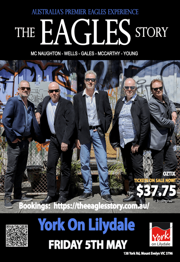 Greetings to you, lovers of the EAGLES music. We have 3 fab shows coming up in October & November to see out the year for us. Beaconsfield Club Friday the 6th of Oct, Wangaratta PAC Saturday the 28th of Oct & Chirnside Park Country Club Friday the 24th of Nov. Yes we do get about! All these shows are selling fast, so don’t miss out on tickets to these, especially if they are local to you. Click on the links or call direct!