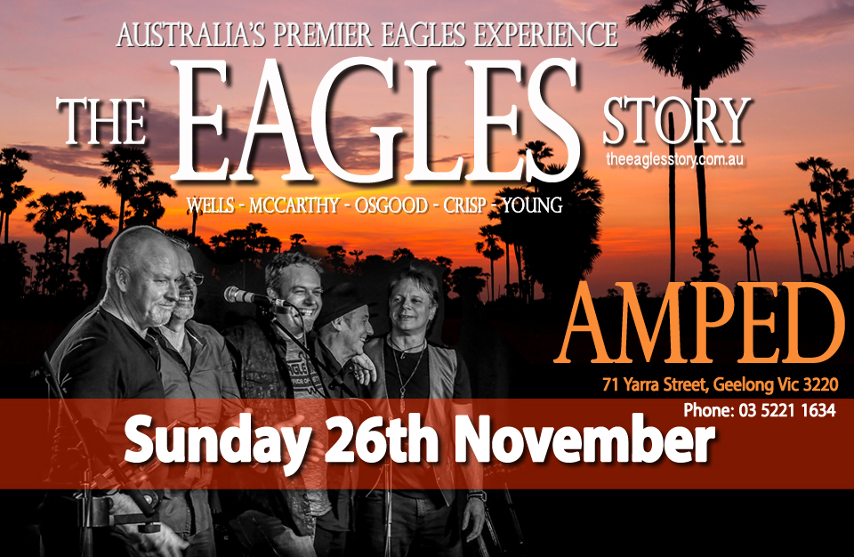 Brand new venue for us in Geelong! It’s a Sunday arvo session, 2 x sets filled with EAGLES hits. Tickets for this show are limited by the capacity of the room and it will prove to be an intimate afternoon all round.