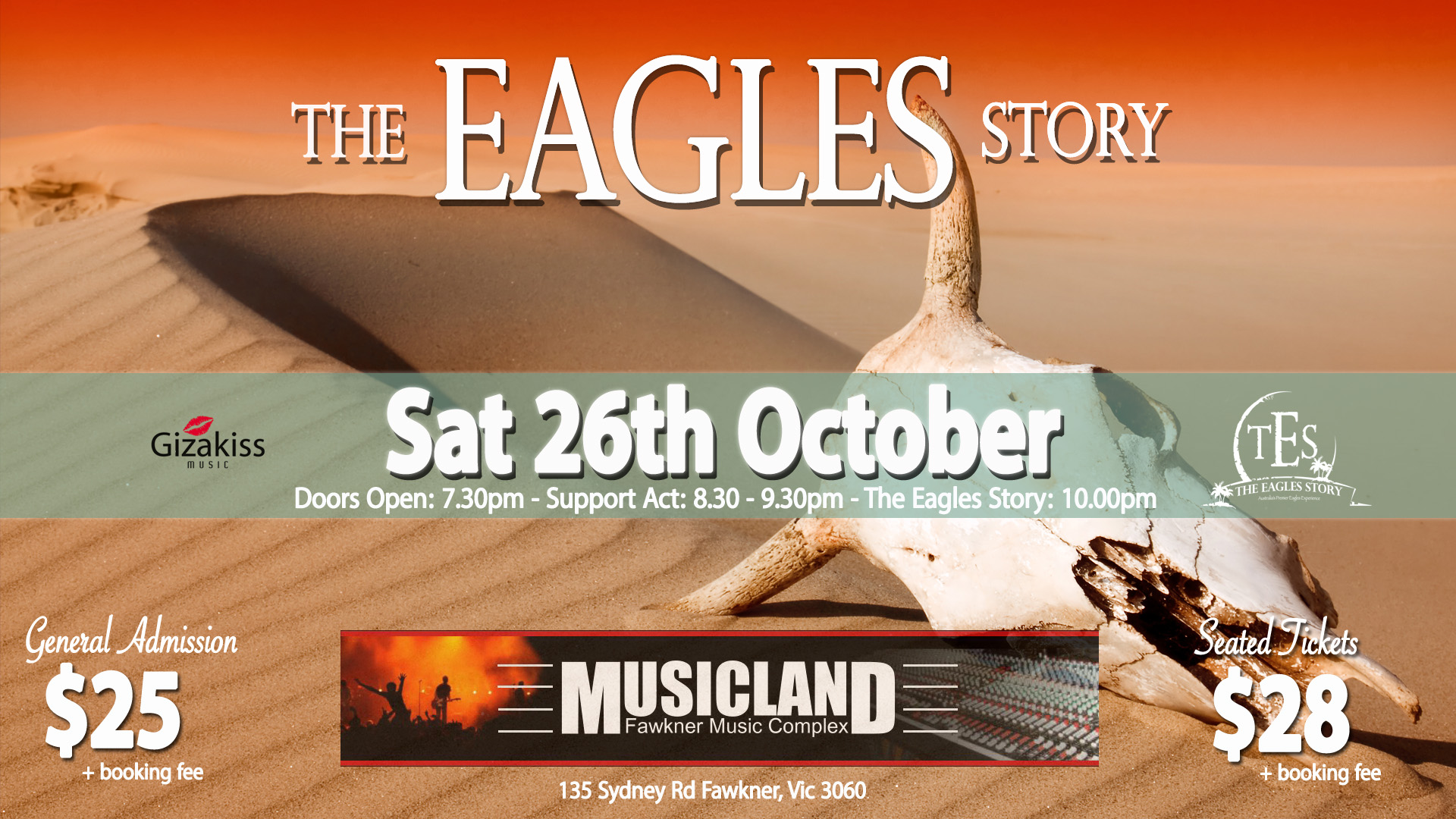 Category: Just Announced, Latest NewsTags: Ash Osgood, Ashley David Osgood, Australia's Premier Eagles Tribute, Cres Crisp, Eagles Tribute Show, Gary Young, In Concert, Life In The Fast Lane, Live Music Venue, Musicland, MusicLand Fawkner, MusicLand Fawkner Music Complex, Pete McCarthy, Steve Wells, TES, The Eagles, The Eagles Story, The Eagles World Tour, Victorian Eagles Show