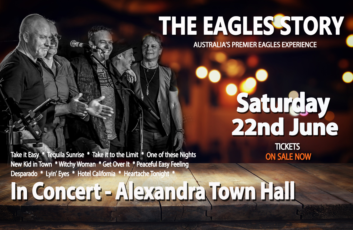 Alexandra Town Hall Concert series is coming next month, so we’re putting a call out to Alexandra’s Eagles tragics to join us! The Eagles legend began in California in 1971 with The Eagles Story tribute show being put together in Melbourne in 2010. The band… Continue Reading “Alexandra Town Hall – Sat 22nd June”