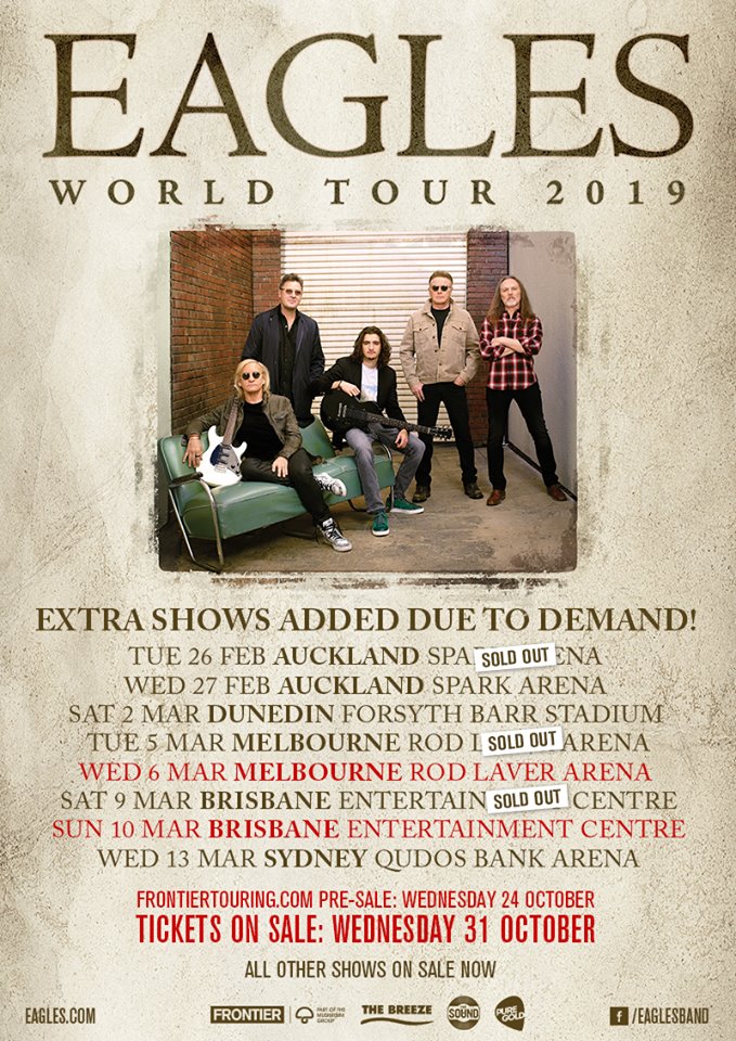 NEW SHOWS – To meet overwhelming demand, 2nd & final concerts for the Eagles World Tour have been added in Melbourne and Brisbane! 🎫 frontiertouring.com/eagles Get on it, before they’re already gone!